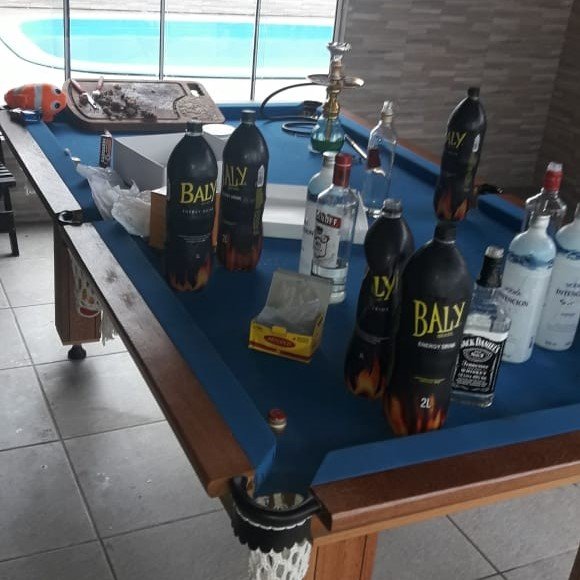 A polícia informou que a festa interrompida em Garopaba do Sul era regada a bebidas alcoólicas e substâncias entorpecentes, sendo necessário reforço policial por conta do comportamento não colaborativo dos autores.