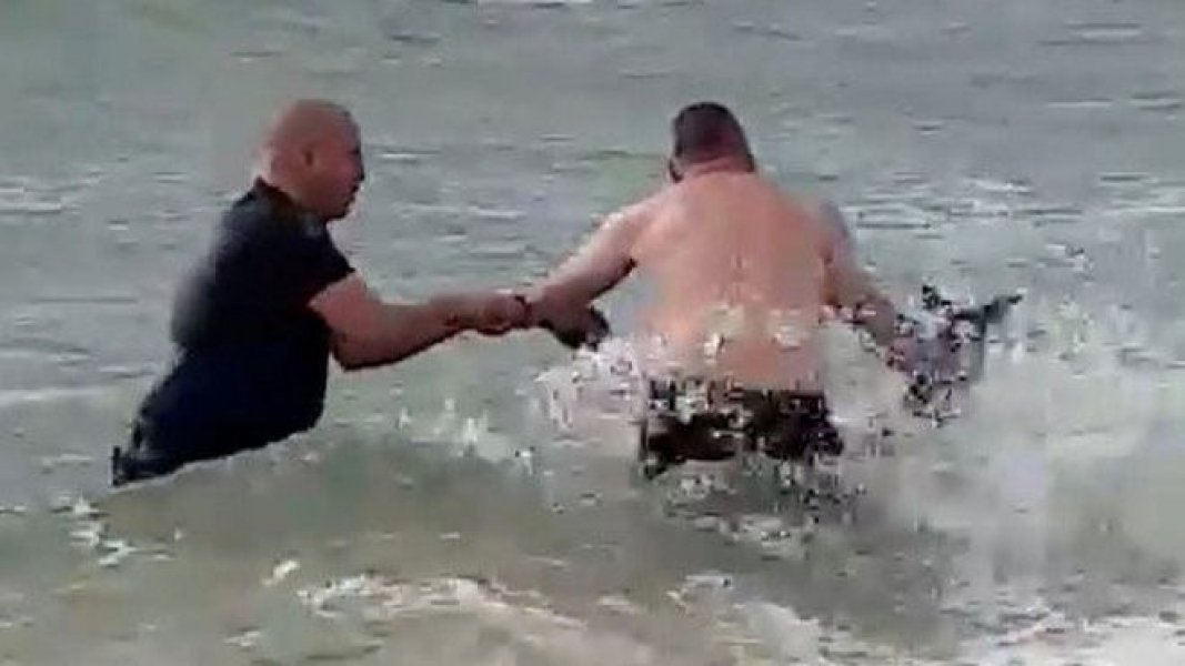 Dois policiais australianos conseguiram salvar a vida de um canguru que se afogava no mar do sul de Melbourne na tarde deste sábado.
