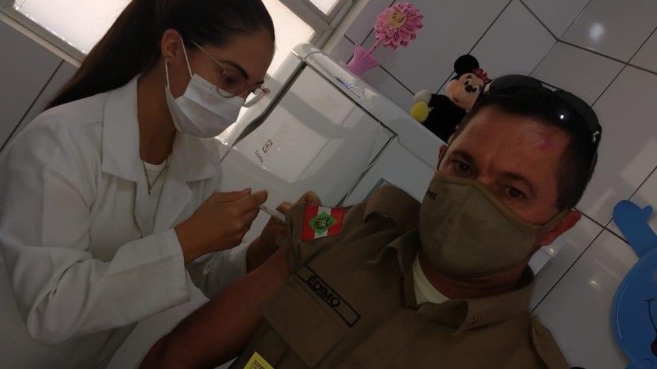 Policiais Militares de Santa Catarina receberam nesta sexta-feira (9), as primeiras doses da vacina contra o Covid-19. O primeiro policial a ser imunizado foi o Sargento Édimo Antônio Garcia, de 47 anos, que atua em Sangão e está há 24 anos de serviço na PMSC.