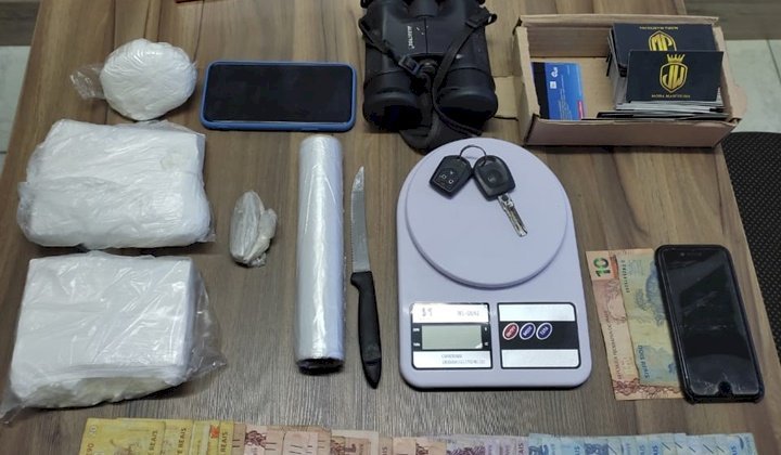 Além dos dois suspeitos de tráfico de drogas, as equipes encontraram 1,018 quilo de cocaína, 12 gramas de maconha, 1 balança de precisão utilizada para o porcionamento da droga, R$ 297,00 em dinheiro, dois aparelhos de telefone celular, um binóculo usado para monitorar a chegada da PM, materiais para embalar as drogas para a venda e um veículo VW Saveiro, usado para transportar as drogas.