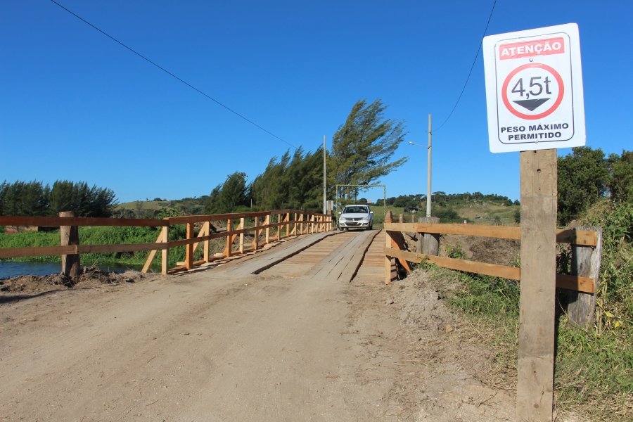 Após ser liberada para o trânsito na última semana, a ponte localizada na comunidade de Jabuticabeira, em Jaguaruna, recebeu mais um investimento em sinalização. No local foram instaladas placas indicativas com peso máximo de 4,5 toneladas para a passagem dos veículos.