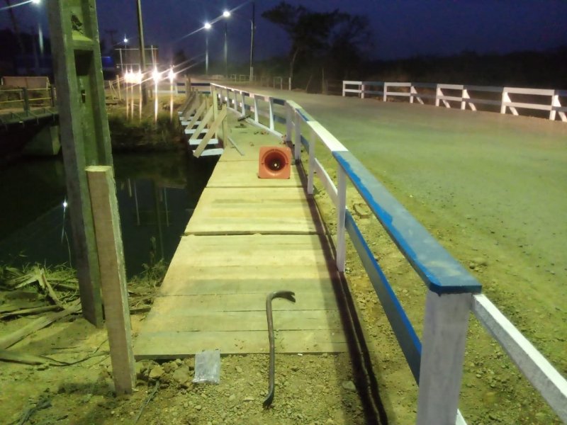 A ponte provisória de madeira sobre o rio Corrêa, na rua Sílvio Búrigo (acesso Sul), recebeu nesta sexta-feira (12) mais alguns acabamentos de segurança para a passagem de veículos, ciclistas e pedestres. Os trabalhos serão concluídos no fim de semana.