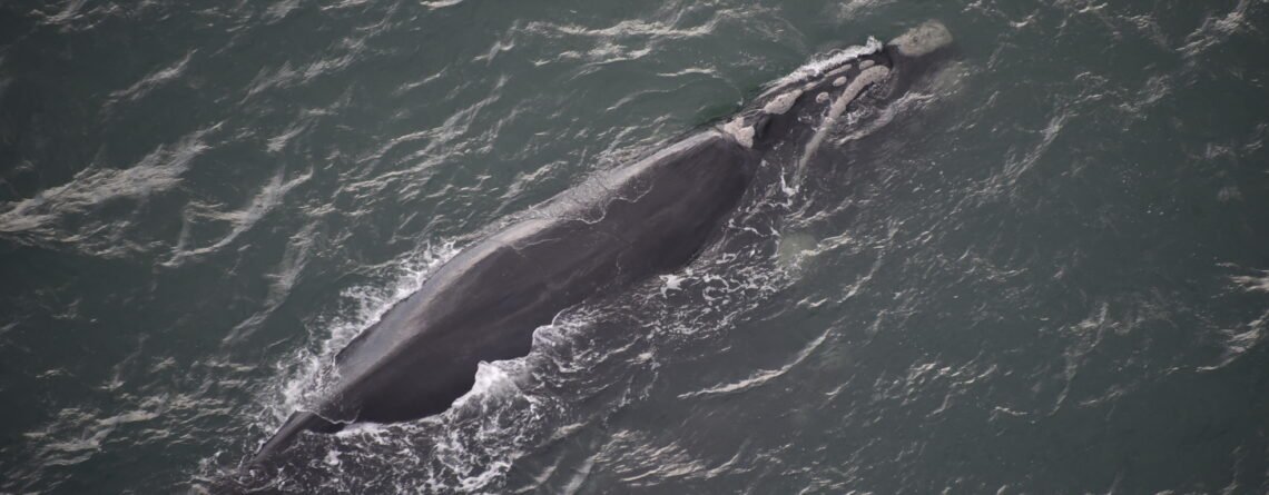 As baleias avistadas durante os voos são fotografadas para identificação individual, por meio das calosidades únicas na cabeça de cada animal.