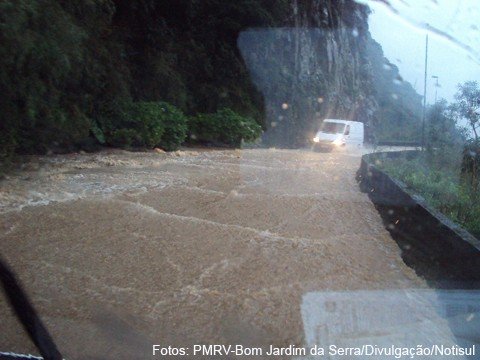 Nesta quarta-feira, um forte temporal já tinha ocasionado o fechamento da SC-438. Parte das pistas ficaram inundadas. Até às 20 horas de ontem não havia previsão de quando o tráfego para veículos menores seria liberado no local.