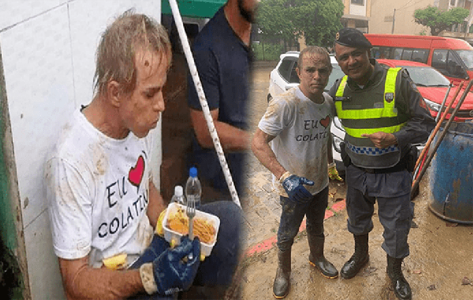 Uma foto em que o prefeito de Colatina, Sérgio Meneguelli, aparece fazendo uma refeição após um serviço de mutirão em Iconha (ES) tomou as redes sociais neste Domingo (26).