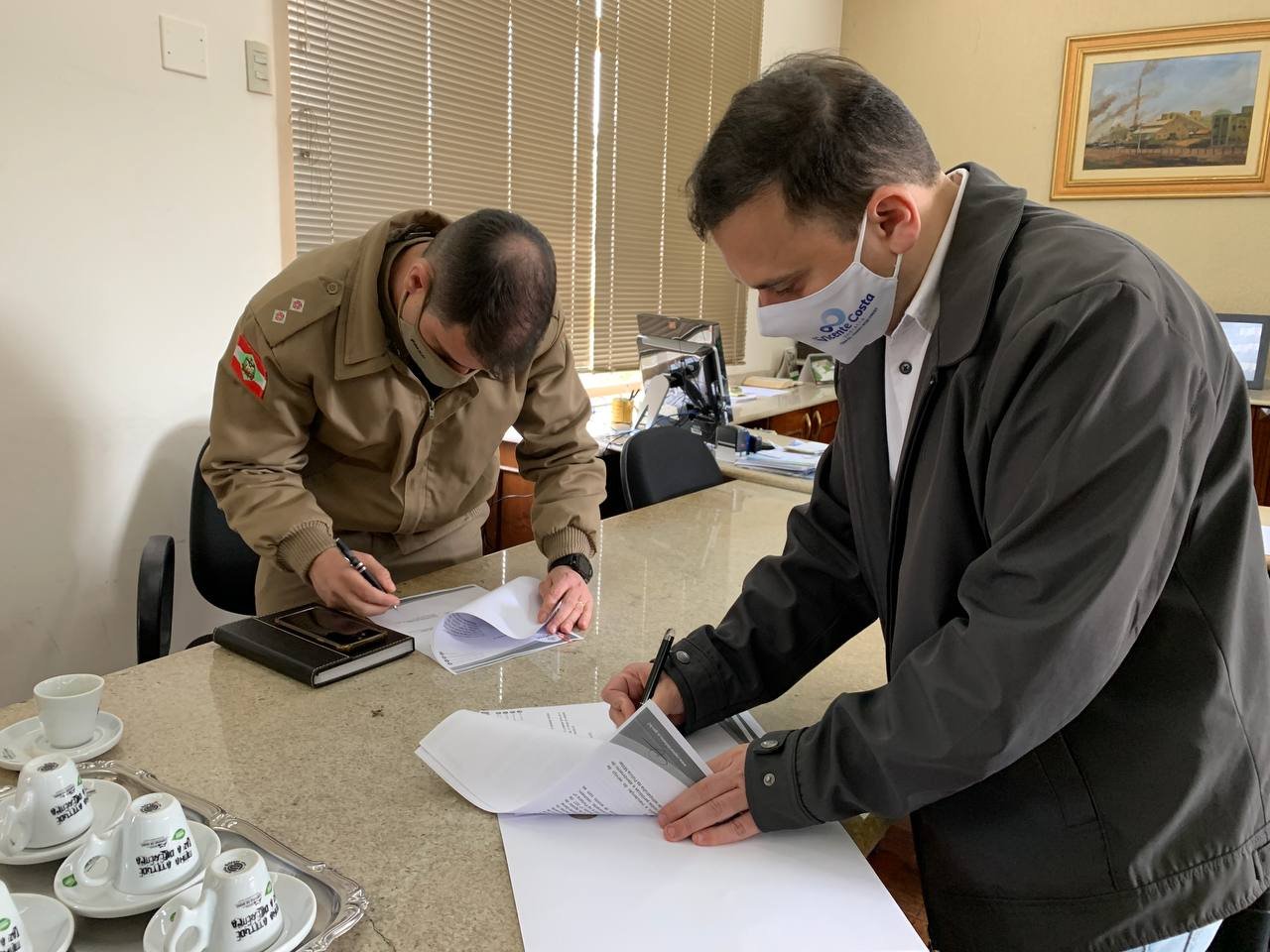 Um Termo de Convênio, vai disponibilizar, todos os meses, a quantia de R$ 6,5 mil ao 3º Pelotão da 2ª Companhia do 5º Batalhão da Polícia Militar de Capivari de Baixo, bem como dois funcionários de serviços gerais (limpeza e cozinha), para atuar no Pelotão, com os vencimentos sob responsabilidade do poder Executivo. A assinatura do documento, com validade de cinco anos, foi efetuada nesta quarta-feira (16), no Gabinete do prefeito Dr. Vicente Costa.