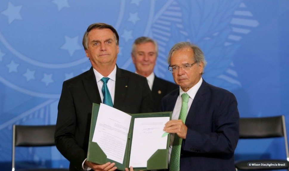 A assinatura ocorreu em cerimônia no Palácio do Planalto, com a presença do ministro da Economia, Paulo Guedes. A extinção do IOF sobre operações cambiais é uma das exigências para o país integrar a Organização para a Cooperação e Desenvolvimento Econômico (OCDE).