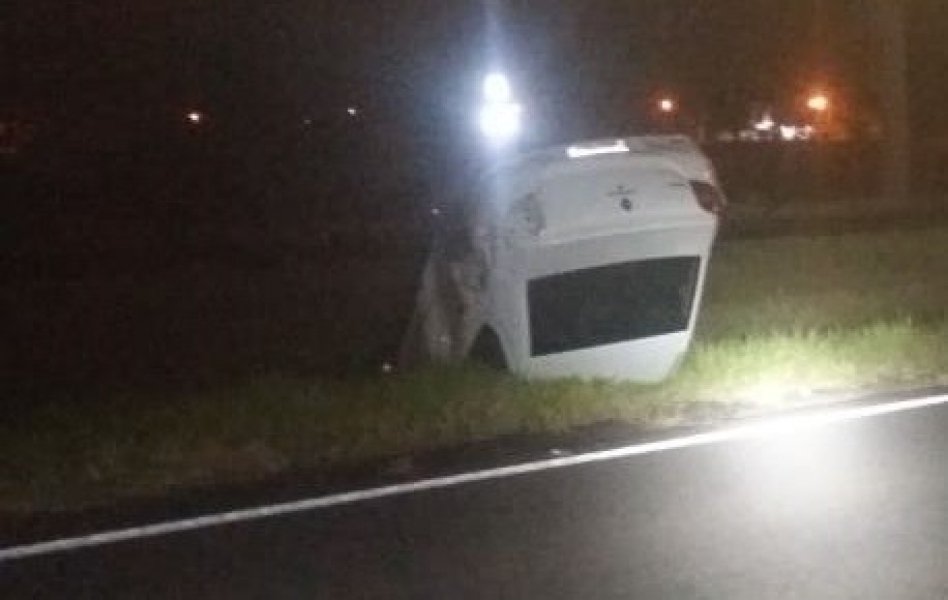 Um veículo foi encontrado capotado às margens da BR 101, em Sangão, na madrugada desta segunda-feira.