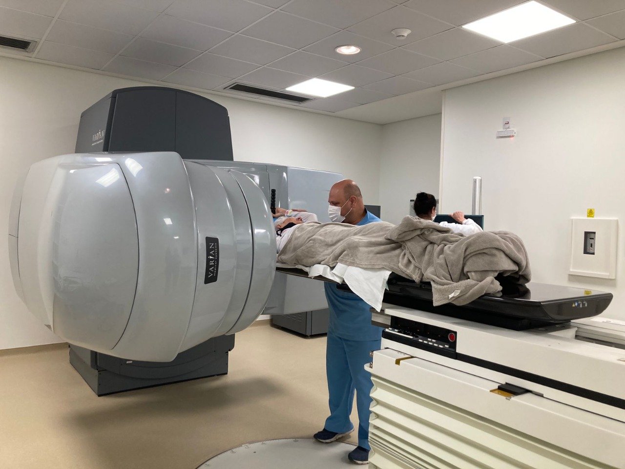 Maria Santa da Silva, 80 anos, de Imbituba, foi a primeira paciente a receber o tratamento de radioterapia do serviço disponibilizado pelo Hospital Nossa Senhora da Conceição esta semana. A paciente já faz tratamento oncológico há bastante tempo e teve uma nefrectomia por neoplasia há 10 anos. Desde então vem se submetendo a diversos procedimentos devido a doença em vários órgãos. Segundo a equipe, o tratamento radioterapia para Maria vem ajudar principalmente no alívio da dor, isso porque as aplicações diminuem o tamanho do tumor, o que alivia a pressão no órgão atingido, reduz hemorragias, dores e outros sintomas, proporcionando alívio aos pacientes e contribuindo para a melhoria da qualidade de vida.