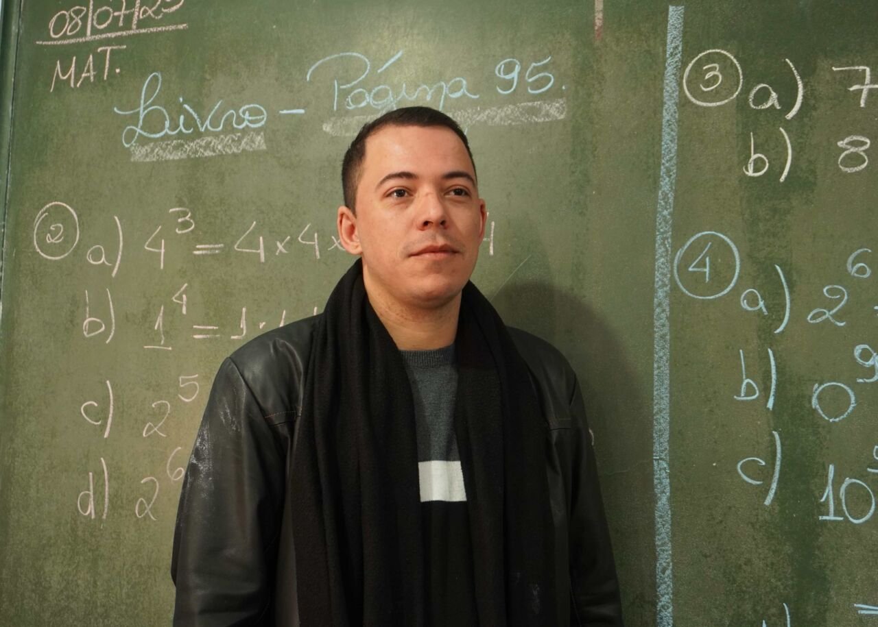 Na Emeb Fausta Rath, Filipe é admirado por alunos e colegas. Os estudantes destacam seu jeito prático de ensinar matemática e a inspiração que representa.