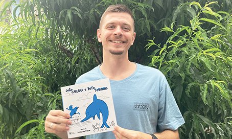 Guilherme conta que o livro João Caiçara e Boto Toquinho surgiu a partir de uma reflexão durante a pandemia. “Como professor gosto sempre de contar do boto para os meus alunos, mostro foto, falo sobre o papel dele e sobre a ameaça que eles correm. Durante a pandemia me veio na cabeça que deveríamos ter alguma forma de ilustrar para as crianças os botos e falar sobre a espécie e assim, poder zelar por eles”, destaca.