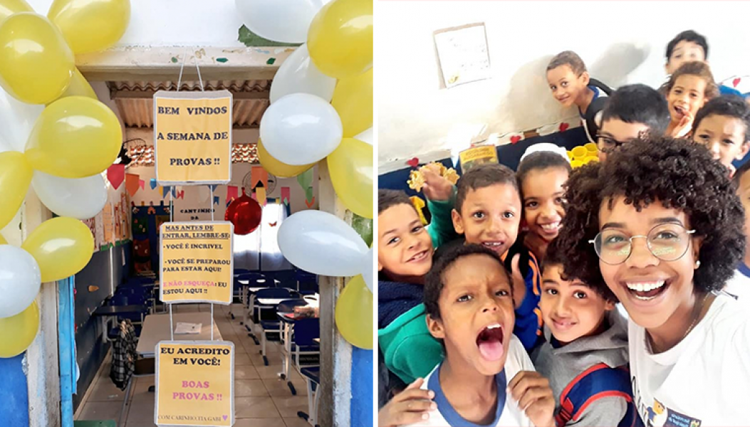 São pequenos gestos que fazem a diferença! A professora Gabi Freire, 22 anos, da Escola Municipal Vereador Paulo Barenco, em Magé, Rio de Janeiro, identificou que seus alunos iam muito mal nas provas. O motivo? Nervosismo.