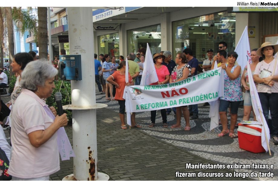 Em Laguna, um grupo de mulheres também protestou contra a reforma. Elas se reuniram ontem em frente à agência do INSS, no Centro.