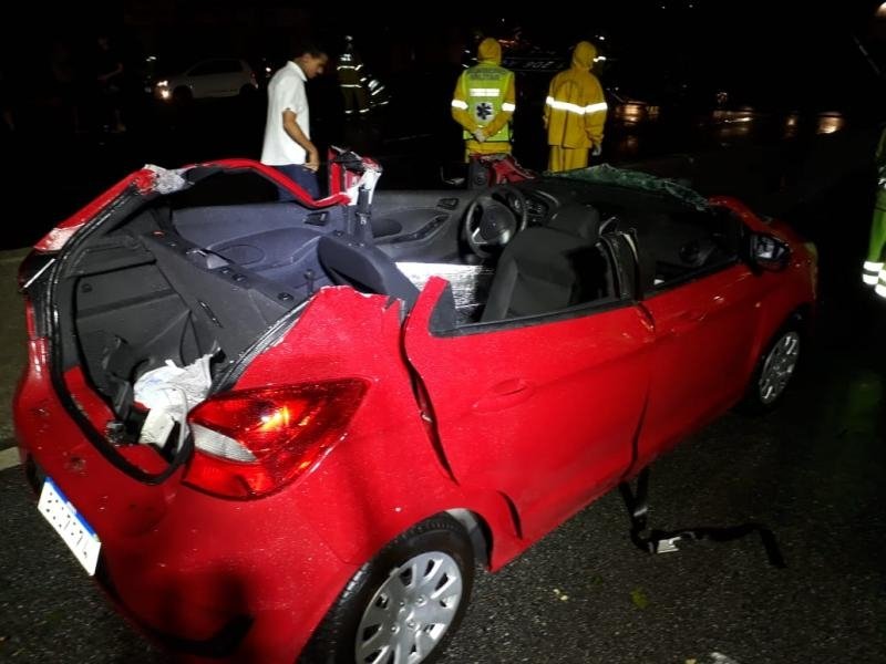 Três veículos foram atingidos na queda e duas pessoas que estavam em um dos carros, um Ford Ka, ficaram feridas. Elas ficaram presas nas ferragens e tiveram que ser retiradas pelo Corpo de Bombeiros.