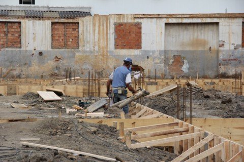 Os dez funcionários da empresa Souza e Esmeraldino, vencedora da licitação, estão concentrados na edificação das vigas que darão sustentação à estrutura. No momento, eles efetuam a concretagem das vigas dos fundos da estrutura. “Toda a fundação está pronta”, acrescenta o engenheiro civil responsável pela obra, Fábio Goulart Barrios.