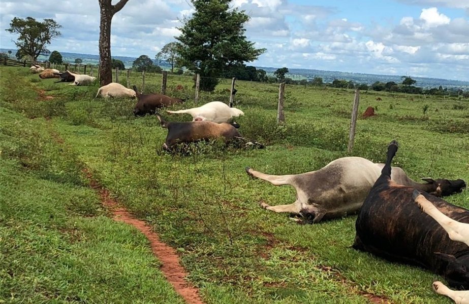 Vinte e uma cabeças de gado morreram depois que um raio atingiu a fazenda Nossa Senhora de Fátima, em Aparecida do Taboado, 481 quilômetros de Campo Grande. O incidente ocorreu na noite da última quarta-feira (dia 20) e, segundo o produtor rural Nelson Bernal Salvador, o raio matou parte do rebanho de 150 cabeças, que pastava no local. Foram 17 vacas, um boi e três bezerros da raça Braford atingidos.