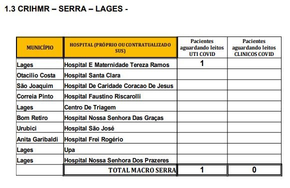 Já a macrorregional Sul, onde a cidade referência é Criciúma, é a segunda mais preocupante: existem 24 pacientes aguardando leitos de UTI Covid-19. Destes, 7 são na Amurel. Não há pacientes aguardando leito em enfermaria.