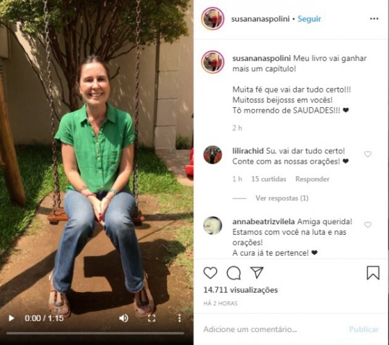 A criciumense e jornalista Susana Naspolini revelou hoje através de um vídeo publicado numa rede social que está novamente com câncer. A jornalista que é um fenômeno no jornal local da Globo no RJ comunicou que vai ficar afastada por um mês para se adaptar ao tratamento com medicação. É a quinta vez que Susana luta contra a doença.