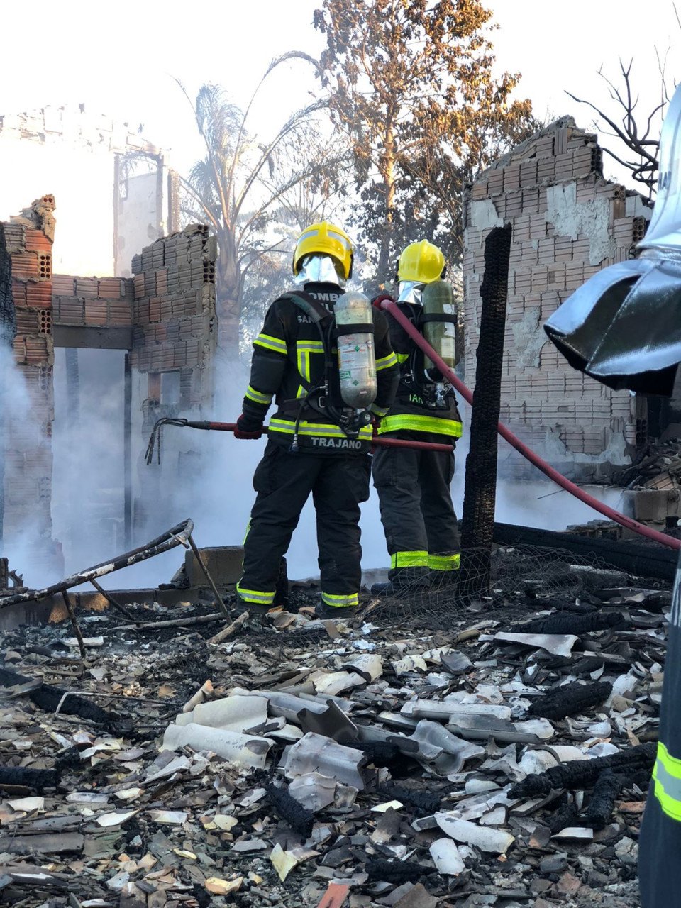 No local, rua Ataíde Manoel da Rosa, bairro Arroio, os socorristas confirmaram o incêndio em residência, privativa multifamiliar. As chamas já haviam atingido toda a edificação de uma área construída de aproximadamente 250m².