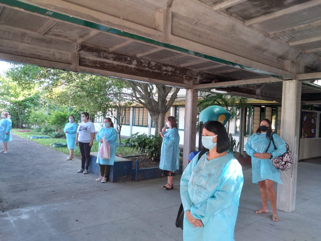 No portão das unidades escolares, nova medição de temperatura, uso do tapete higienizador para os calçados e do álcool em gel. Lá dentro, as carteiras separadas desenhavam um cenário diferente daquele com o qual alunos e professores estavam acostumados. No recreio, o distanciamento deixou com saudades quem estava com uma imensa vontade de dar uma grande abraço e ou de conversar.