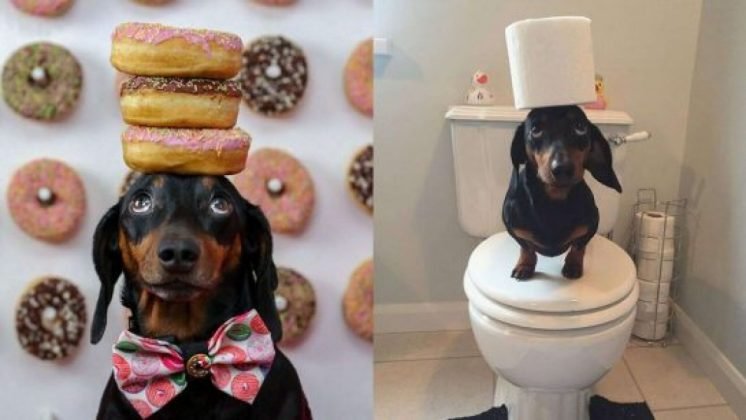 Um adorável cãozinho raça Dachshund, o popular ‘salsicha’, virou uma celebridade do Instagram por ser capaz de equilibrar perfeitamente uma série de objetos com a cabeça – desde um copo de água até um pedaço de melancia!