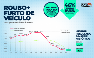 Os números de mortes violentas, roubos de pessoas e de veículos em Santa Catarina são os menores índices da série histórica, iniciada em 2008 no Estado. Os dados, referentes ao ano passado, foram apresentados pelo Colegiado Superior de Segurança Pública e Perícia Oficial na tarde desta segunda-feira (17).