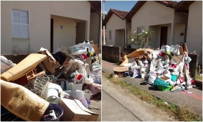 A casa foi esvaziada e tudo foi simplesmente despejado na calçada, algo que além de não ser nada agradável aos olhos, pode trazer problemas de entupimentos de drenagens entre outros.