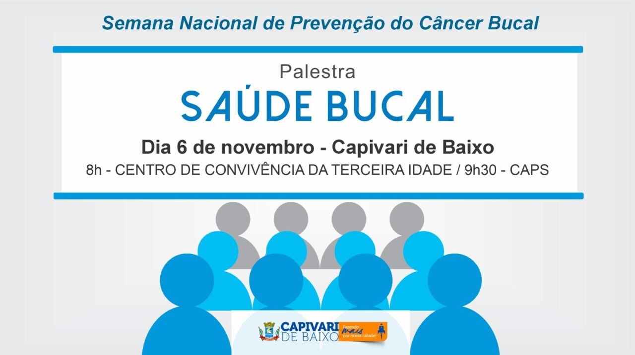 A Coordenadoria de Saúde Bucal da Secretaria de Saúde de Capivari de Baixo promove, nesta quinta-feira (6), duas palestras sobre prevenção ao câncer de boca. As atividades fazem parte da Semana Nacional de Prevenção do Câncer Bucal, realizada em todo o país de 1 a 7 de novembro.