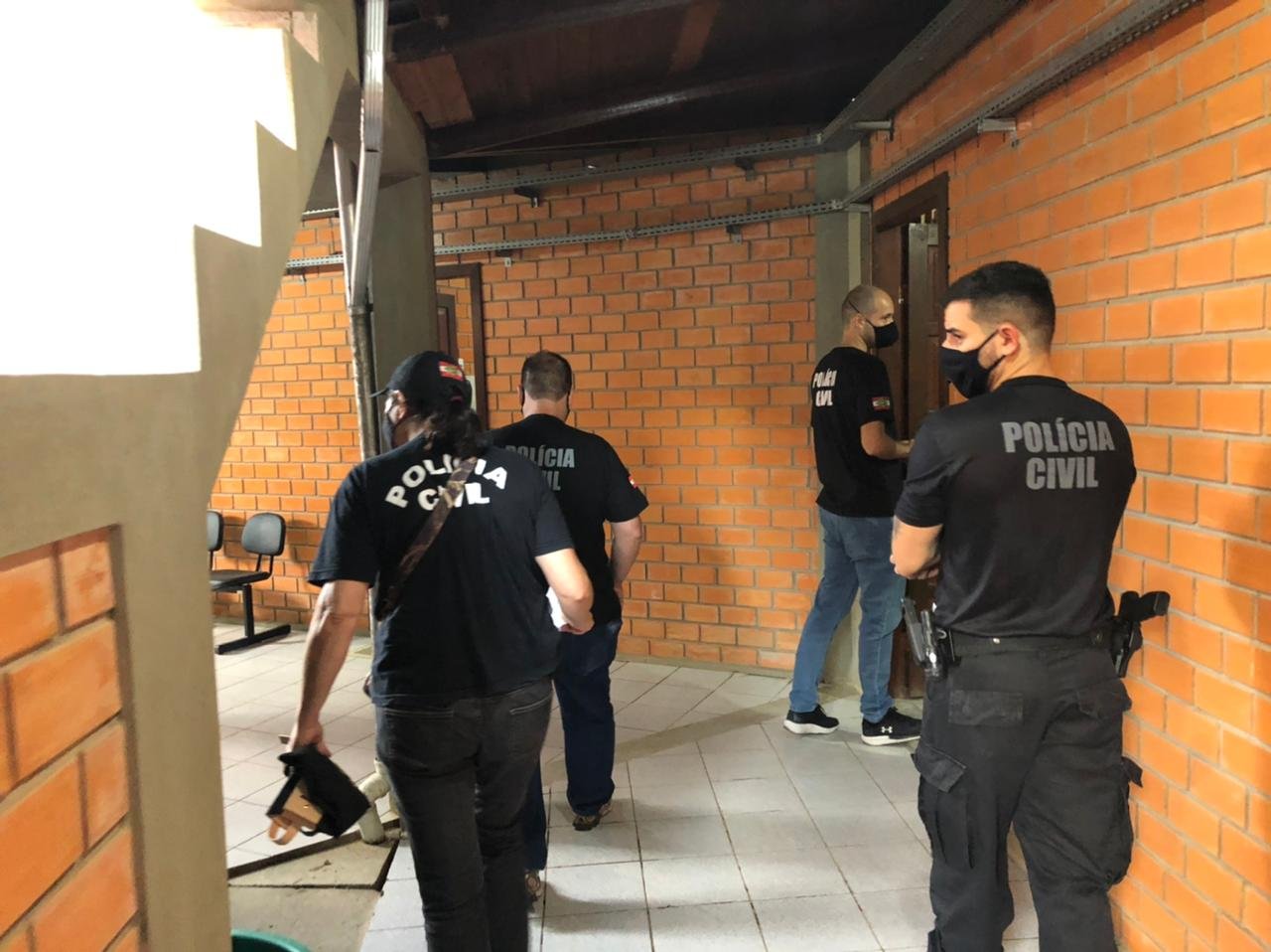 Durante a operação, mais de 20 policiais civis cumpriram quatro mandados de busca e apreensão, três em Sangão e um em Tubarão, além de prender temporariamente seis servidores públicos de Sangão. Outras duas pessoas foram conduzidas à Delegacia de Polícia suspeitas de receptação de telefones celulares, supostamente objetos de peculato identificados durante a investigação.