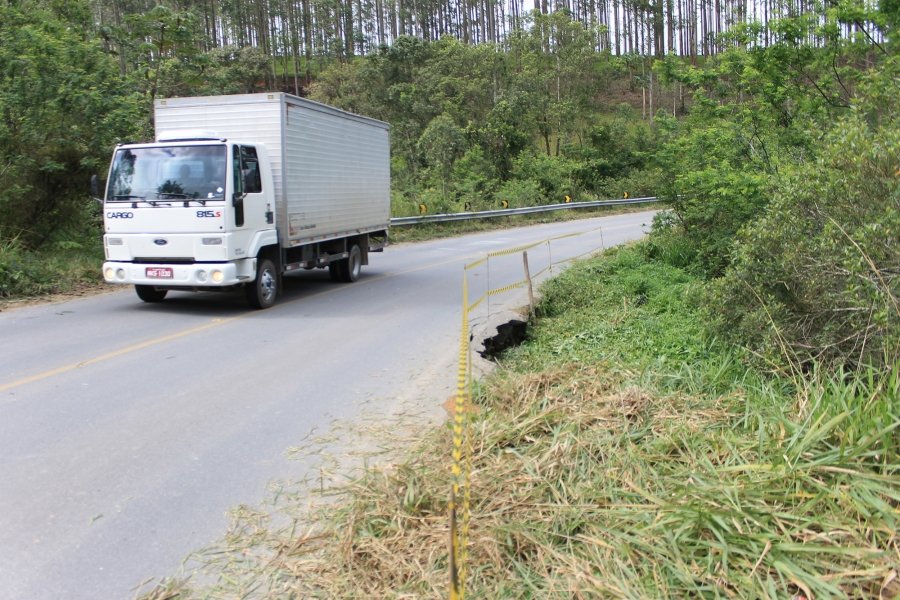 Motoristas que transitam pela rodovia SC-108 entre Rio Fortuna e Santa Rosa de Lima devem ficar atentos com um trecho na comunidade de Nova Fátima, que apresenta erosão. O local apresenta desgaste na beirada da pista, com possibilidade do problema aumentar em caso de chuva forte ou de trânsito frequente de veículos com excesso de peso. Servidores da prefeitura de Santa Rosa de Lima realizaram na última quinta-feira um trabalho de sinalização em um ponto específico. A municipalidade comunicou o Departamento de Infraestrutura do Estado ( Deinfra), responsável pela manutenção da via, a respeito da situação. “Nossa preocupação é com a segurança dos motoristas que trafegam pela rodovia. Fizemos uma roçagem da área para ficar bem visível e cercamos a erosão com fita amarela e preta para chamar atenção”, informou o prefeito Salésio Wiemes.