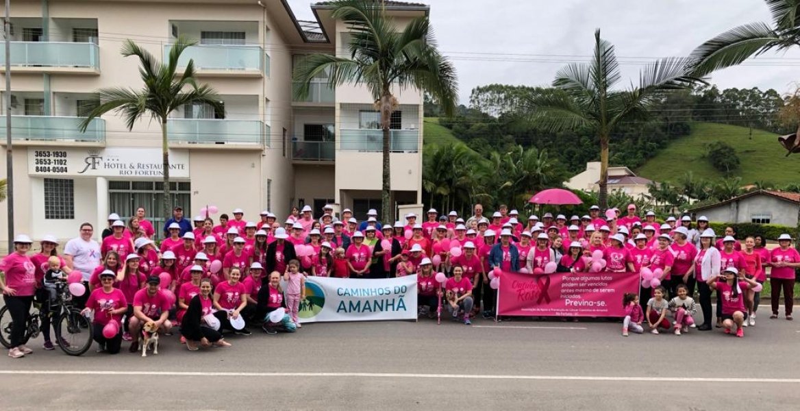 Mais de 150 pessoas participaram da tradicional caminhada pela vida, alusiva ao movimento Outubro Rosa, em Rio Fortuna. Promovida pela Associação de Apoio e Prevenção do Câncer “Caminhos do Amanhã”, de Rio Fortuna, a ação ocorreu na manhã de ontem, e contou ainda, com sorteio de mensalidades em academias da cidade, pilates, zumba e massagem. Tudo preparado com o intuito de promover os cuidados com a saúde e bem-estar. É notável que a população busca cada vez mais cuidar da saúde, por isso, é imprescindível os exames para detectar o câncer, como preventivo, mamografia, PSA e toque retal, além de visitas periódicas ao médico. Nota 10!