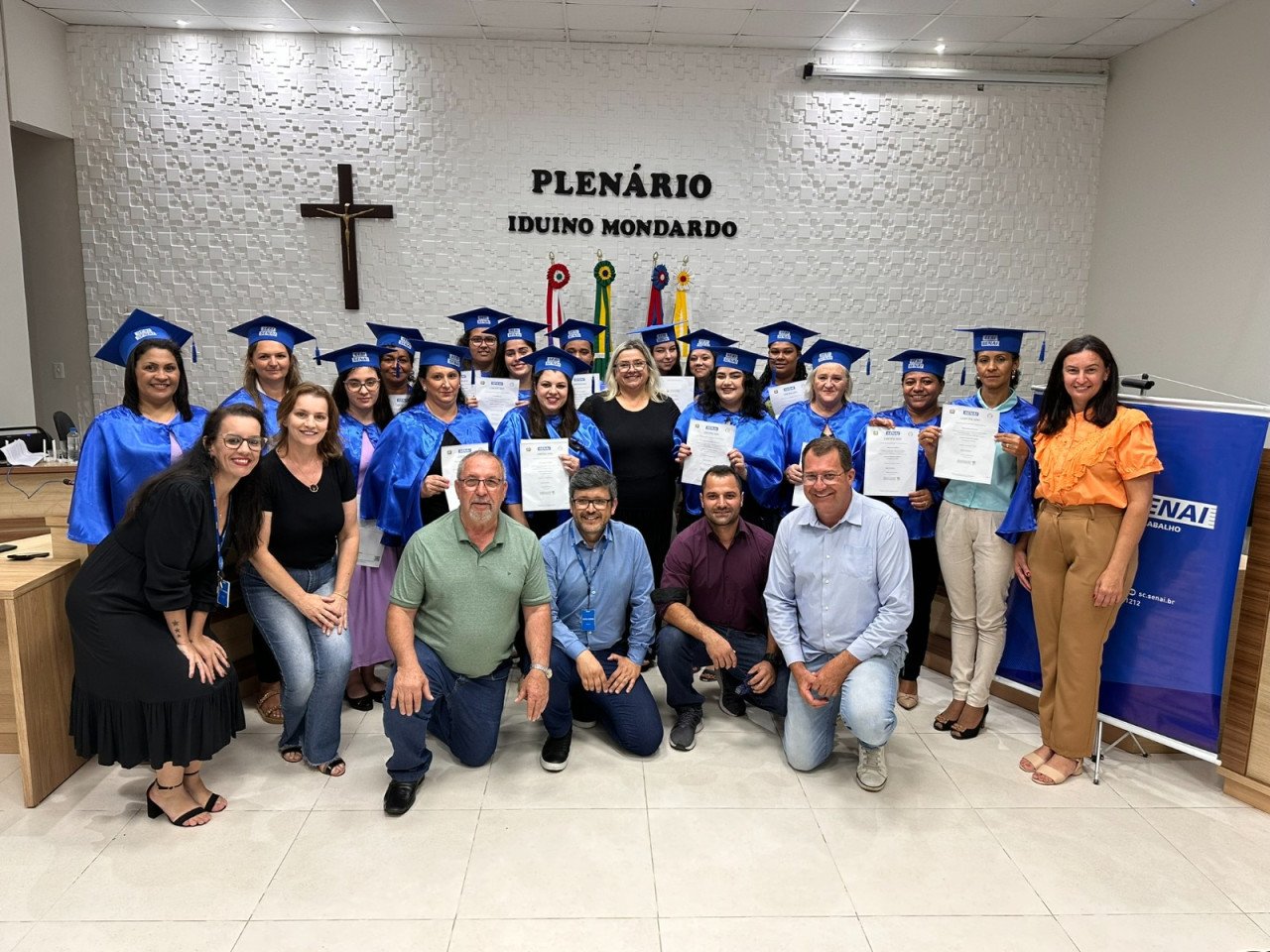 Durante o evento, a aluna Gessica Mara Alana Ghellere representou a turma e solicitou à prefeitura o apoio para a realização do curso de modelista. Em resposta, a secretária de Administração e Finanças, Josélia Scot Pezente, anunciou que já estão alinhando o contrato para tornar possível a nova formação, convidando mais participantes para futuras turmas.