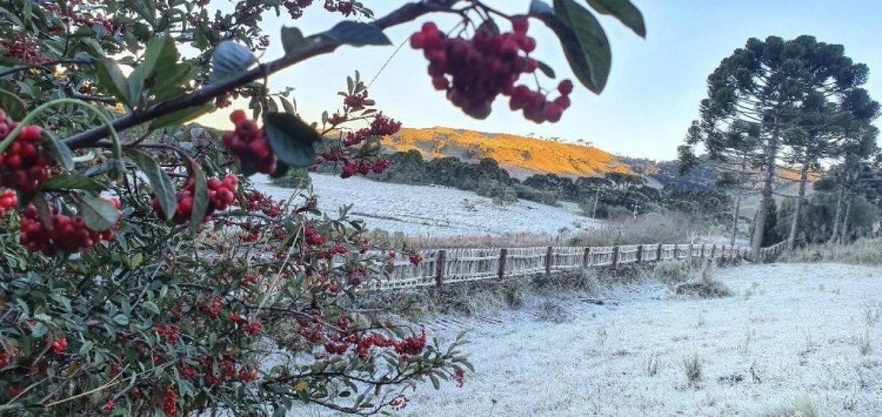 A serra catarinense teve outra madrugada muito gelada durante o amanhecer desta segunda-feira (8) com temperaturas negativas ainda durante as primeiras horas do dia.