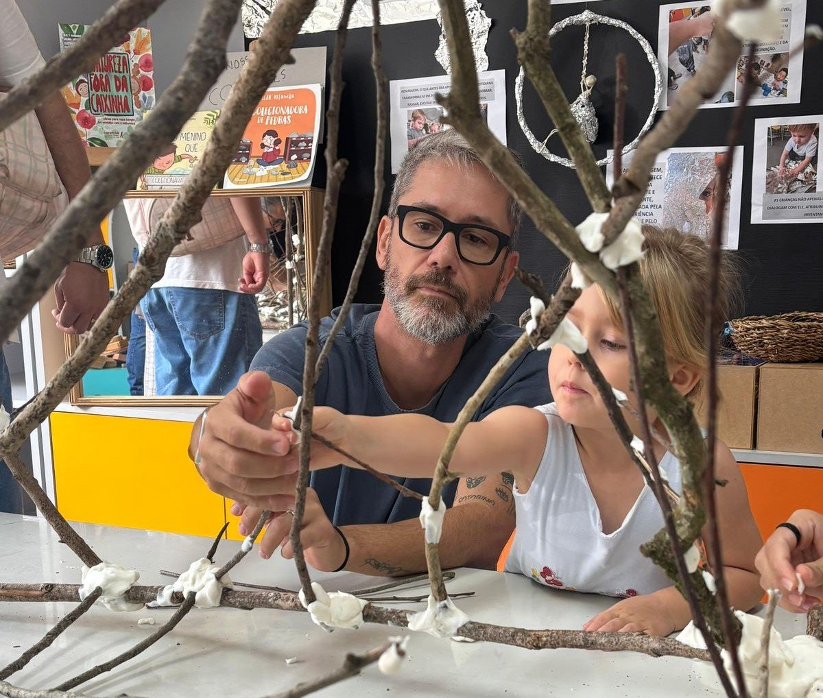 Durante a programação, pais, mães e alunos participaram de atividades inspiradas nas práticas pedagógicas desenvolvidas ao longo do ano.