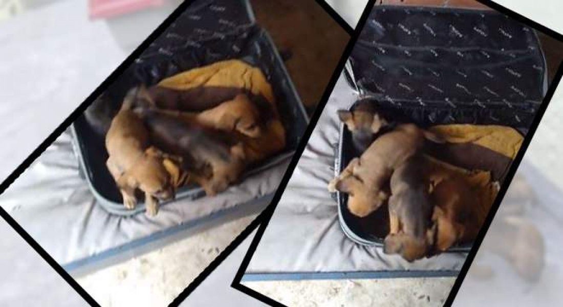 “Achei que fosse lixo, só quando me aproximei ouvi eles gritando. Abri o zíper e lá estavam os filhotes fechados. Devem ter aproximadamente 40 dias”, lembra.