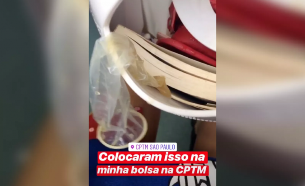 Ela explica que o conteúdo do preservativo não parecia sêmen, mas que sentiu nojo e medo, porque não sabia se era tóxico. “Eu pensei que a pessoa que colocou isso na minha bolsa poderia estar no trem, então eu peguei e joguei [o preservativo] no meio do trem, mas ninguém falou nada.”