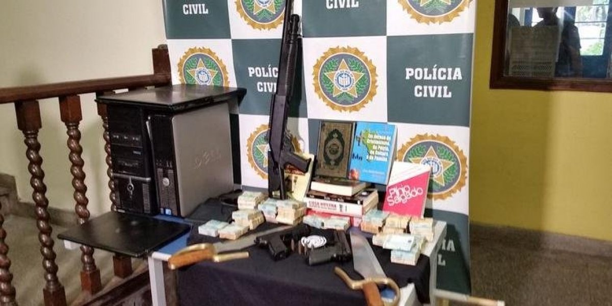 Em ação realizada na terça-feira, segundo a polícia, os agentes estiveram em endereço residencial na Barra da Tijuca, na zona oeste do Rio; em dois dois pontos comerciais na Praça Mauá, no centro, sendo um deles identificado como residencial; e no Engenho Novo, na zona norte. No último endereço, funciona um posto de combustíveis, que já não pertence mais ao suspeito. Na Barra, os agentes encontraram R$ 119 mil, dois simulacros de armas de fogo, facões, munição, camisa de entidade filosófico e política e computadores.