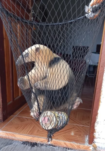 Conforme o Corpo de Bombeiros, que foi acionado por volta das 15h30, o tamanduá estava encolhido em um canto da casa, junto de outros móveis, na área de serviço.
