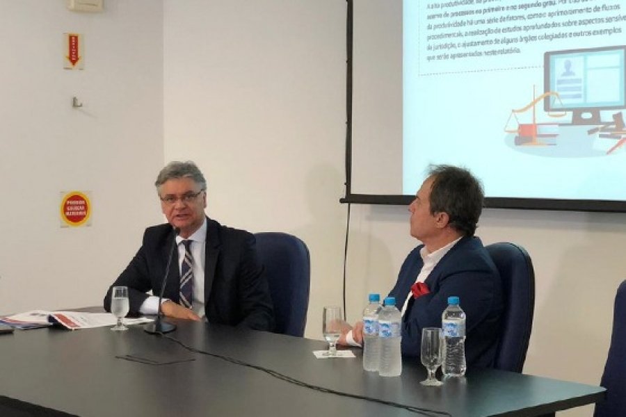 O presidente do Tribunal de Justiça (TJSC), Rodrigo Collaço, afirmou que o sistema processual eletrônico (e-Proc) está “definitivamente implantado no estado”. A informação foi dada à imprensa nesta terça-feira (17), durante o que o desembargador chamou de Dia da prestação de contas do Poder Judiciário catarinense, realizado na sede da Associação Catarinense de Imprensa (ACI). O e-Proc foi alvo de desavença com o Conselho Nacional de Justiça (CNJ), que determinou a implantação do sistema Processo Judicial eletrônico (PJe) em todos os tribunais de Justiça do país. “O e-Proc imprimiu maior celeridade à tramitação das ações, encurtando prazos e eliminando atos processuais desnecessários. Estimamos que ele gere uma economia anual de R$ 14,5 milhões”, ressaltou. Segundo Collaço, a ferramenta tem ampla aprovação dos operadores do Direito. Além disso, permite que cerca de dez mil servidores e usuários externos, capacitados por meio de videoaulas, possam trabalhar de casa. O método é o mesmo adotado pelo Tribunal Regional Federal da 4ª Região (TRF-4) e parte do êxito da Lava Jato é atribuído não apenas a procuradores, juízes e funcionários, mas também à agilidade do sistema, que permite o acompanhamento das ações penais em tempo real e armazena mais de 50 terabytes em documentos digitalizados. Responsável por ajudar a Justiça do Rio Grande do Sul e do Paraná a economizar milhões, pois é alimentado pelos próprios servidores, a iniciativa já chegou a oito tribunais. A apresentação do presidente do TJ-SC foi acompanhada pelo anfitrião, presidente da ACI, Ademir Arnon.