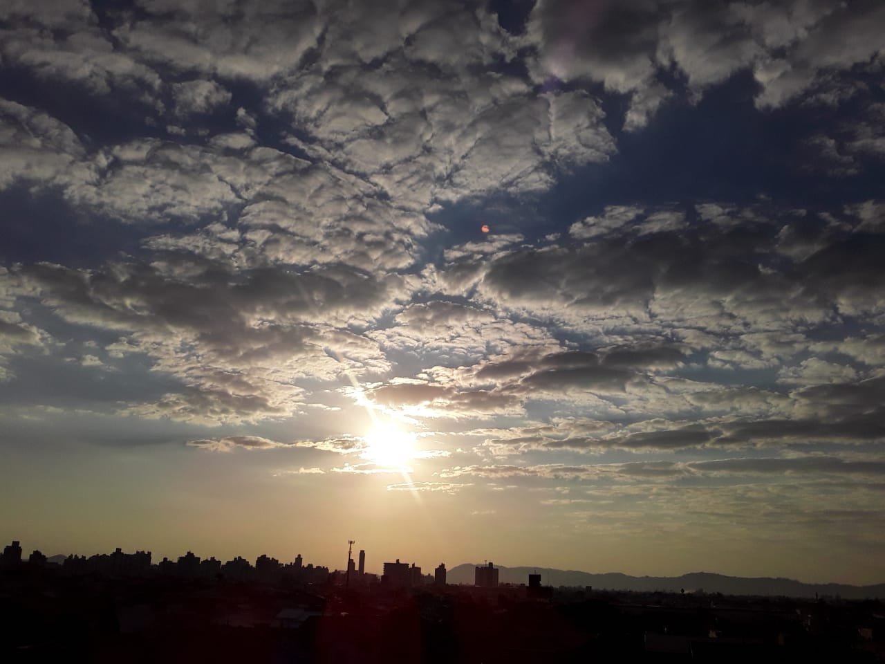 O sábado começa com algumas nuvens e chuva isolada em áreas do Litoral e Vale, mas no decorrer da manhã a chuva cessa. Nas demais áreas, dia começa com sol e poucas nuvens.