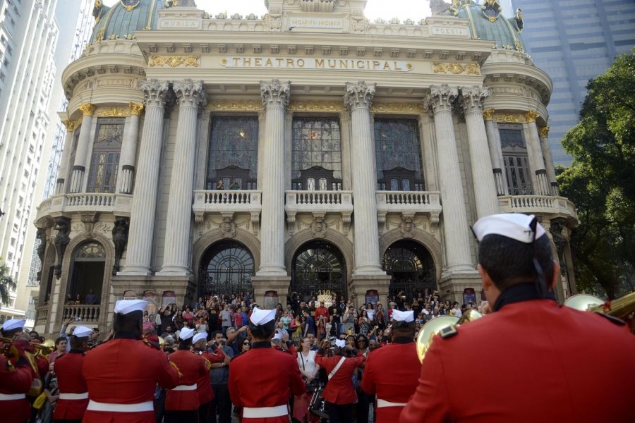 Uma longa fila se formou na Avenida 13 de Maio, no centro do Rio, horas antes dos portões se abrirem para a programação oficial pelos 110 anos do Theatro Municipal, neste domingo (14). A entrada gratuita para os espetáculos comemorativos ajudou a atrair centenas de pessoas que jamais pisaram em seu suntuoso foyer ou subiram suas escadas cobertas por tapetes vermelhos e revestidas em mármore.