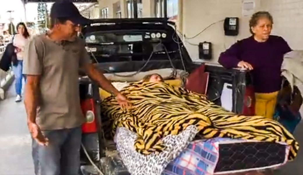 “Parece que nosso caso não era uma emergência! Ela estava se urinando nas calças de tanta dor, a gente não conseguia aguentar mais ver o sofrimento dela, tivemos que trazer ela desse jeito, improvisar uma maca de madeira dentro da caçamba da caminhonete para trazer ela”, relatou um familiar.
