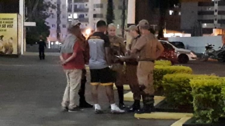A confusão continuou próximo à sede da barra Os Tigres com o jogador e alguns torcedores trocando empurrões e quase chegando aos socos.
