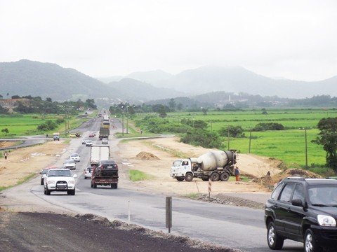 o começo desta semana, os motoristas que trafegam pela BR-101 no trecho de Jaguaruna dividiram a pista com máquinas e trabalhadores da Construtora Triunfo, responsável pela duplicação do lote 26 das obras de duplicação, entre Tubarão e Sangão.