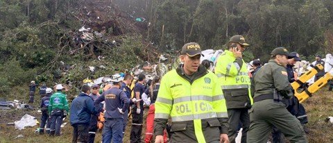 O voo que transportava o elenco da Chape rumo à Colômbia caiu a poucos quilômetros do aeroporto José Maria Córdova. Até o momento, 76 pessoas morreram, segundo a polícia colombiana, dentre eles 19 jogadores do time catarinense.