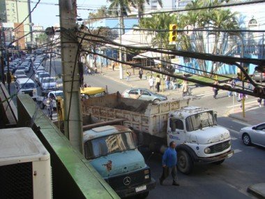 O veículo levava 17 toneladas de terra e teve problemas na balança. Por quase três horas, o trânsito ficou praticamente parado e muita gente chegou atrasada no trabalho.