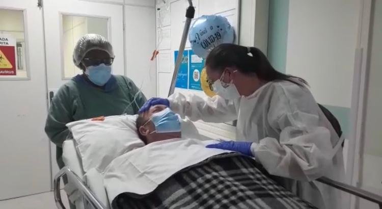 Volmar Back, 56 anos, de Jaguaruna, também pode receber o carinho da esposa Neuraci e os aplausos de toda equipe que o acompanhou durante 16 dias, 12 deles em terapia intensiva. Apesar de grave, o paciente reagiu bem ao tratamento e agora segue em observação em leito de enfermaria.