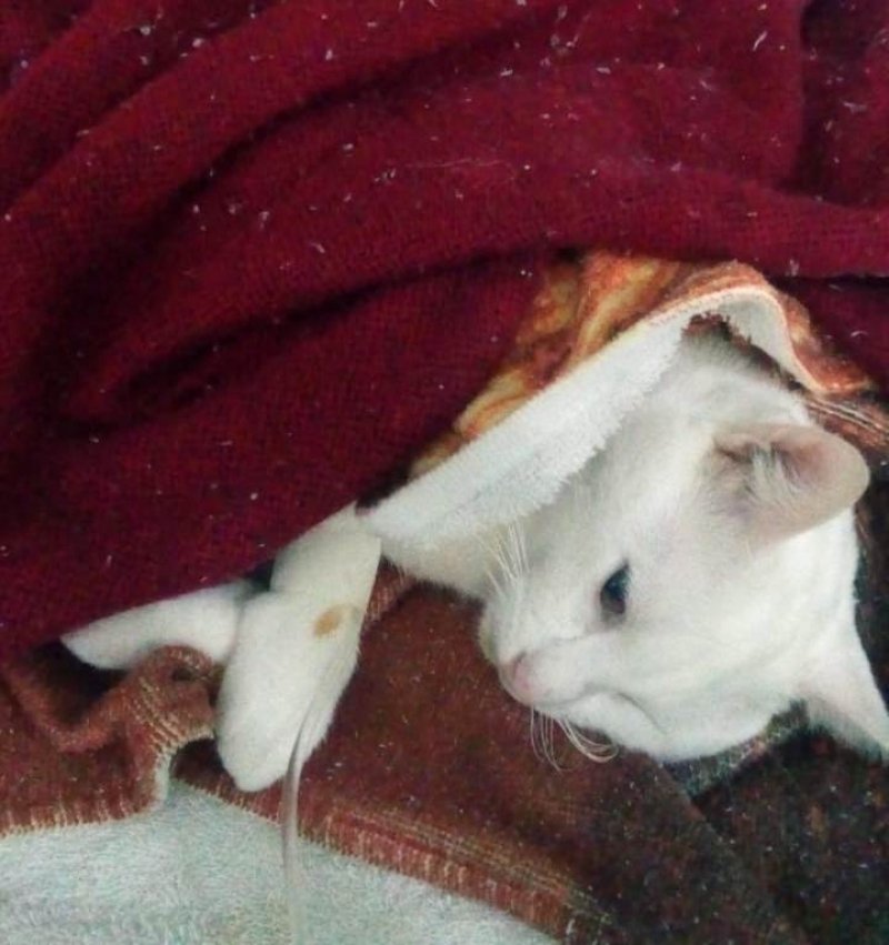 A história do gatinho é muito triste. Ele foi abandonado com cinco dias de vida, com cordão umbilical e os olhinhos ainda fechados, em meio a um matagal, junto com outros três filhotes. Mas, felizmente, existem pessoas de bom coração que se sensibilizam pela causa animal.
