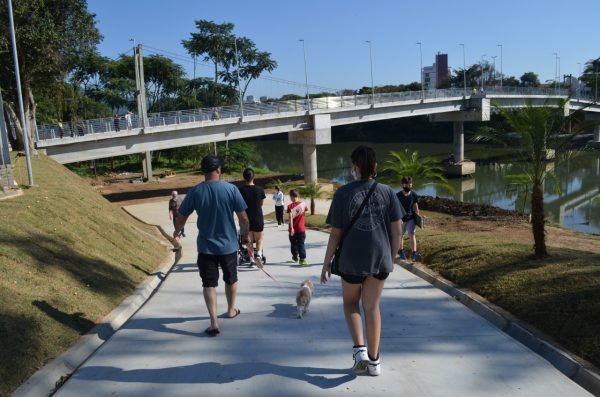 Chegar bem perto do rio através de um acesso seguro e bonito foi um convite natural a dezenas de pessoas, principalmente na manhã de sábado (10). Quem seguia pela passarela e observava a rampa esticou o passeio para as margens do rio e observar o cenário de um jeito até então nunca possível.