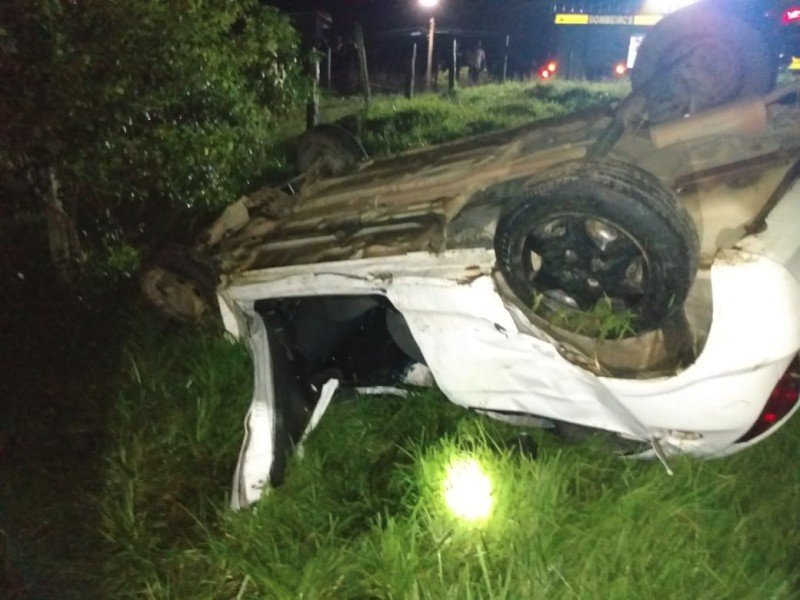 Foram acionadas duas viaturas do Corpo de Bombeiros Militar para atender o capotamento. O motorista e o caroneiro receberam o atendimento pré-hospitalar.
